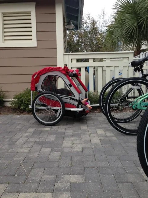 Katie Wynn had zero interest in getting out of the bike trailer when we got back home. She played hide and seek in there for about thirty minutes by herself!
