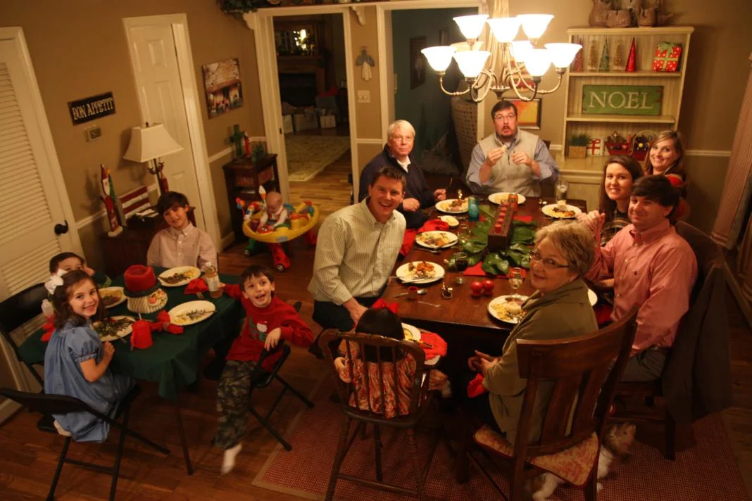 I think this is the first time we've been able to all sit down to eat dinner at the same time since some of these kids have been born! We had to add a kids table but for a few minutes...maybe five?...it was actually quite peaceful while we all sat and ate together. (Then the "When can we open presents?!" started!)