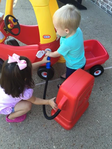 We got a new gas pump for the coupe cars that gets drug out everyday along with the cars. "Hey, hey Mama, I gotta put grass in the cars."