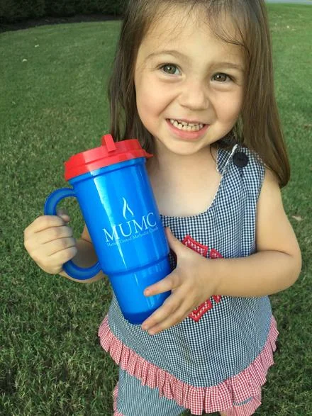 Our church has a new logo so they've had several new merchandise items with it printed on it available for sale. Matt brought home this new cup and Katie-bug claimed it for herself immediately. She thinks it's amazing and loves sliding the top open and closed.
