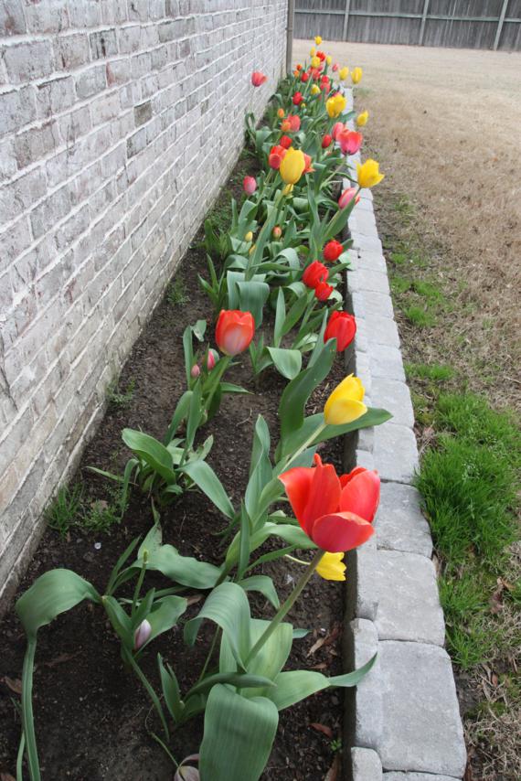 I wasn't sure if the 100 bulbs that bloomed last spring would bud again this year. I'd heard that they don't always survive our super hot summers down in the south. So to be sure I had some eye candy this spring, I planted another 100 bulbs last fall. Can't be too safe! The excellent news? Not only did my new set of 100 bulbs bloom, but so did last year's! Over the past couple of weeks, I have had SO many tulips and I've loved every minute of it! I'm afraid I don't have a single picture that truly captures their beauty. But I've had several neighbors stop and comment on them so I'm glad others are enjoying them too. Maybe I'll plant 100 more this fall so that they keep multiplying in numbers!
