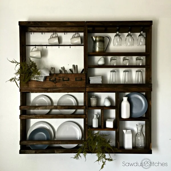 I love how this turned out so much that I have been wandering around my house trying to figure out where I can hang another one for us. Wouldn't it be fun to pop in different plates and glasses for seasonal decor - like a plate for Santa's cookies during Christmas or pastel plates for Easter? I hope you are enjoying it in your new home, Megan!